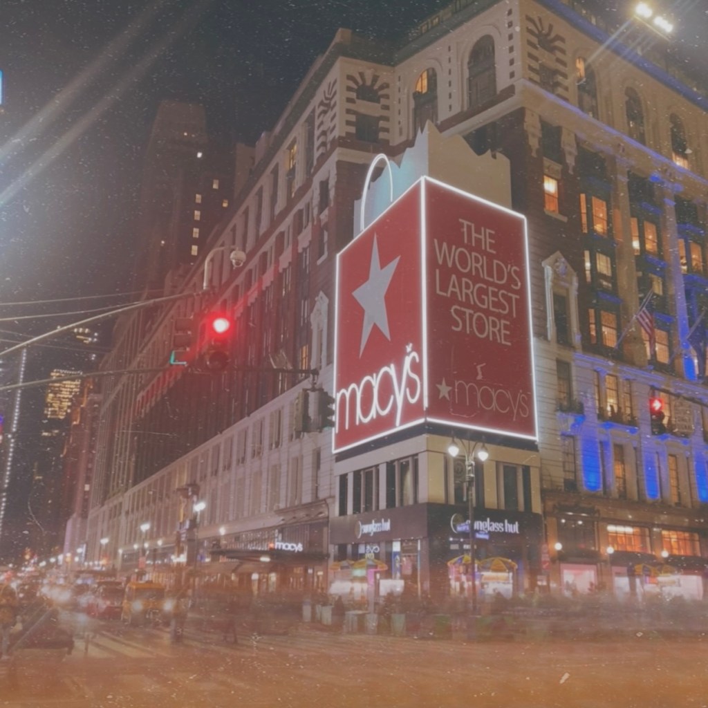 I knew I had to do some shopping whilst I was here. I was eyeing up some trainers before I left the UK which were only available in the US so had to try and get them whilst I was here, as well as some other bits requested by friends and family. I started at Macy’s. One of the biggest department stores in the world. I got so lost as I was wandering around trying to find different bits and pieces. First up was there signature selection where all the Macy’s branded items were, as it was coming up to Christmas I knew I had to get my Christmas obsessed friend some decorations for her tree, so I had a look around and picked a couple I thought she might like before FaceTiming here just to confirm, and that was this stop down. Next stop was some of the surrounding shops (mainly the trainer ones) to find some goodies for me. I found a few pairs I really liked so got them, and also grabbed some for a friend as well that were super cheap compared to the UK (at this point I was really glad I packed light as I was definitely bringing home more than anticipated). Finally, Bloomingdales. My mum loves the original ‘Little Brown Bag’ from there and got one on her last trip to NY but saw that there was loads of new ones, so I had to pick her up one and got her the matching coin purse too. I picked up a couple of bits for her friend and some others there too and then dropped it all back to my hotel before heading back out again.