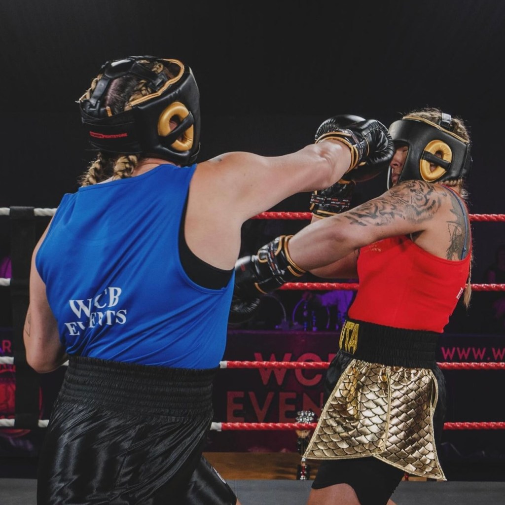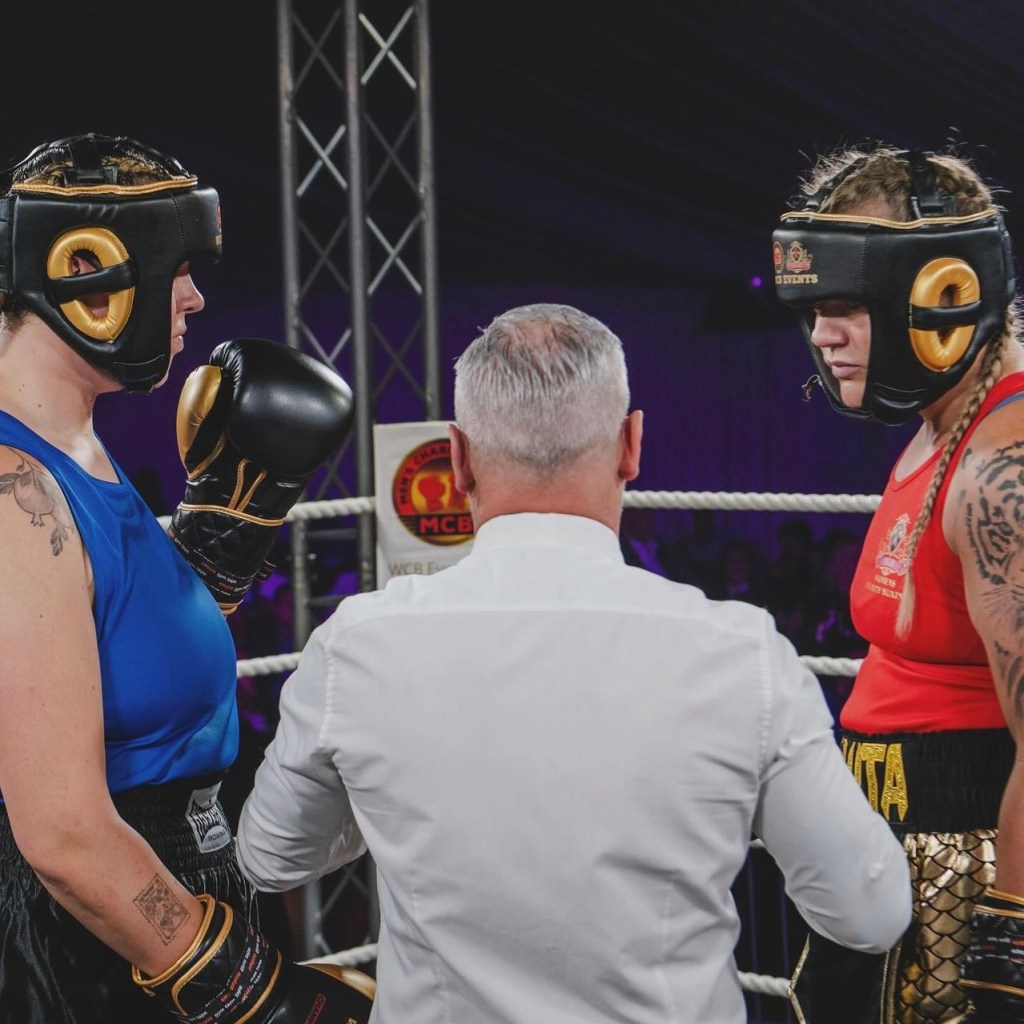 Walkout time had finally arrived and this is where it got real. I spent some time in the training room doing a warmup before hand which got me a bit more excited and got the adrenaline pumping but before I could even imagine what was going to happen, my ringwalk song had started and I was on my way to the ring. Let me tell you, that it felt like the longest walk in the world! First round opened up and about 30 seconds in I knocked my opponent to the floor, I was exhausted after the first round and everyone had told me that no matter how much training and sparring you do, the 2minutes in the ring feels like forever, they were not wrong. I had a minute rest in between and then it was round two. Another knockdown to my opponent about 10 seconds to go. By the end of round two I had finally found a second wind but the referee had called it as my opponent was deemed unfit to continue. It was here when I first realised I’d won. What on earth!! I had won! I genuinely still to this day can’t relive it properly as it still feels like such an insane blur, but having my hand held up winner was something else.