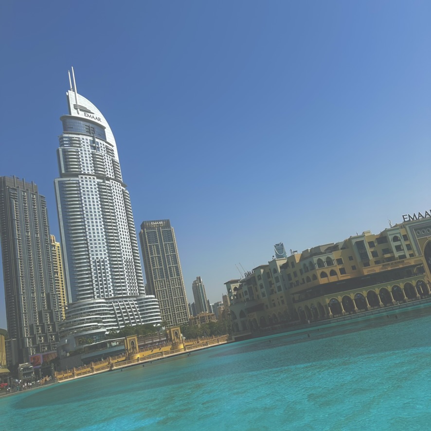 Later in the day I headed off to Sky Views Dubai to watch the sunset and this, this I really enjoyed. You know why, I got to see everything at like a normal skyline level! Also got to see the Burj at sunset and it looked stunning all twinkly. You could also see the Dubai Fountain from here too so managed to get a glimpse of that from a different point of view too. Whilst I was at Sky Views I had the chance to ride their glass slide which was off the side of the building, sounds terrifying right. But it was loads of fun. I also walked across the glass floor and looking down was slightly intimidating I’m not gonna lie!