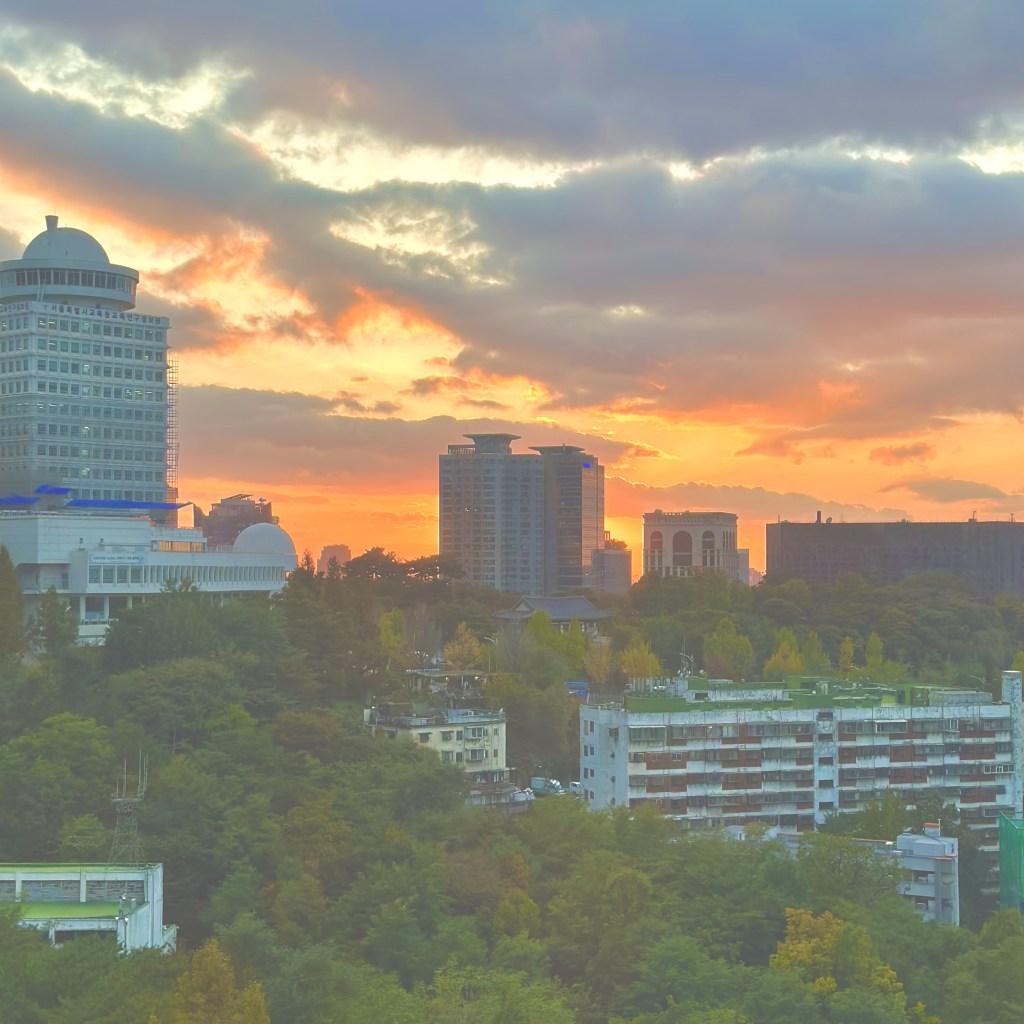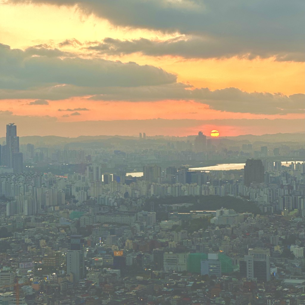 The park was lovely, had some temples, was part of some mountains too so had insane views over Seoul. Imagine it would have been even more insane from inside the tower but we didn’t get tickets for this. We explored the top part and the cable cars provided some wicked views too, we do love exploring like this and again, another sunset to add to the list, this was stunning. There was like a whole shopping bit and restaurants at the top too so we grabbed some dinner, in the form of korean fried chicken in a wrap with kimchi, which was insane, before heading back down to the ground. We also went to the shops that evening to try and find some layers as we now knew the next day was going to be cold with what we were doing! We were not successful though, so we were braving shorts in 5°C for at least the first part.