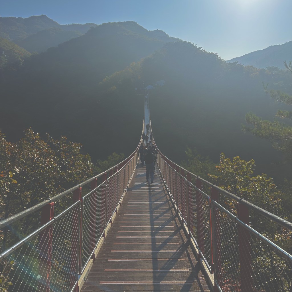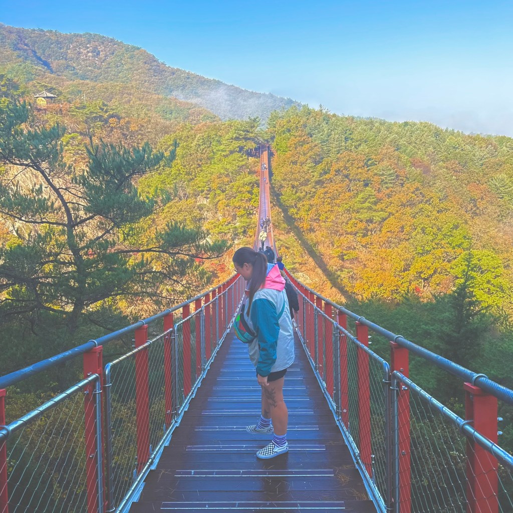 First stop of the day was Gamaksan Mountain and Suspension Bridge. This was included as part of the tour we did as it’s near to the DMZ and I’m so glad we got to experience it! It was insane. We were there at like 9am so it wasn’t too crowded and it made for some beautiful pictures and videos. As well as some stunning views, and hearing nature. It was a steep climb to reach the bridge from the bottom, but so worth it to get to the top. We forgot all about the climb by the time we saw the views and it was yet another pinch me moment. How am I lucky enough to experience this?? We walked across the bridge (slightly wobbly) and back again and checked out a temple that was at the top as well as some other little bits before climbing back down and heading to the next stop.