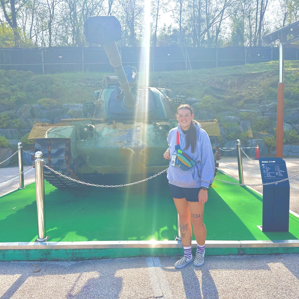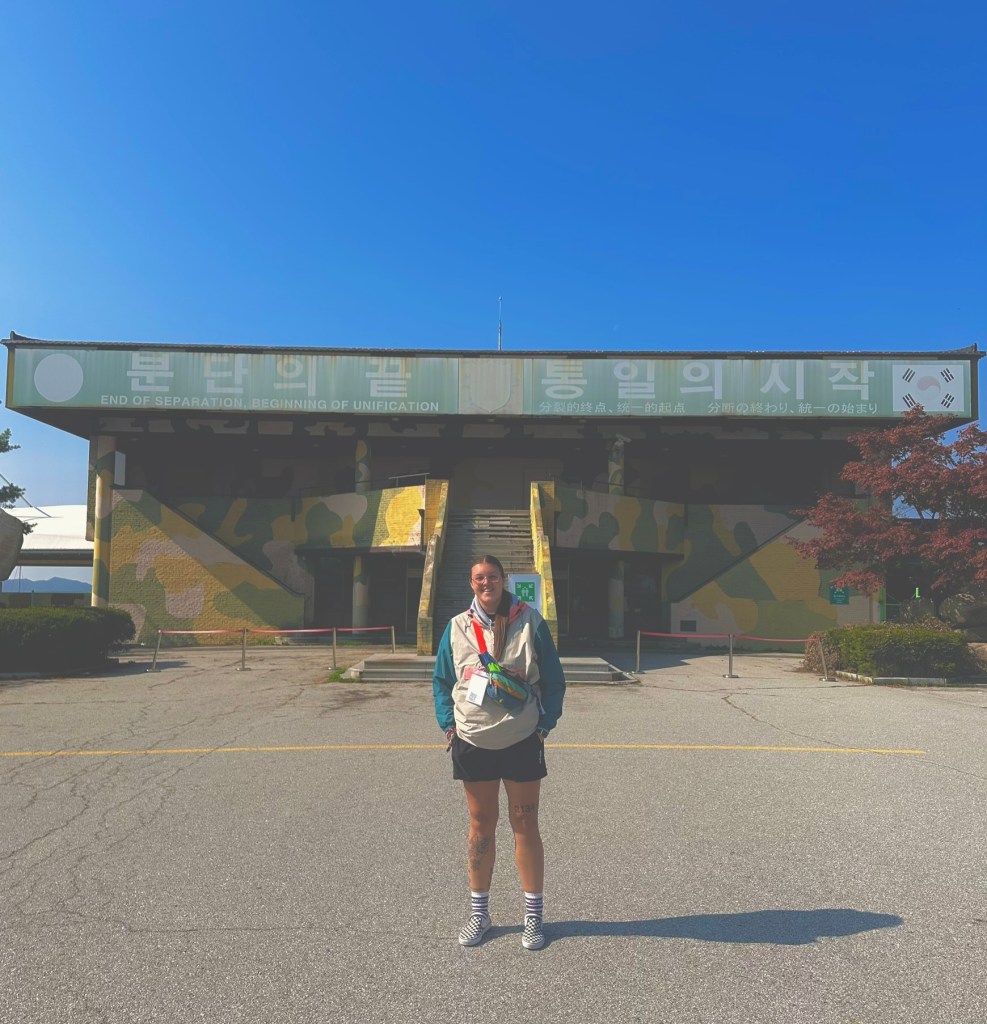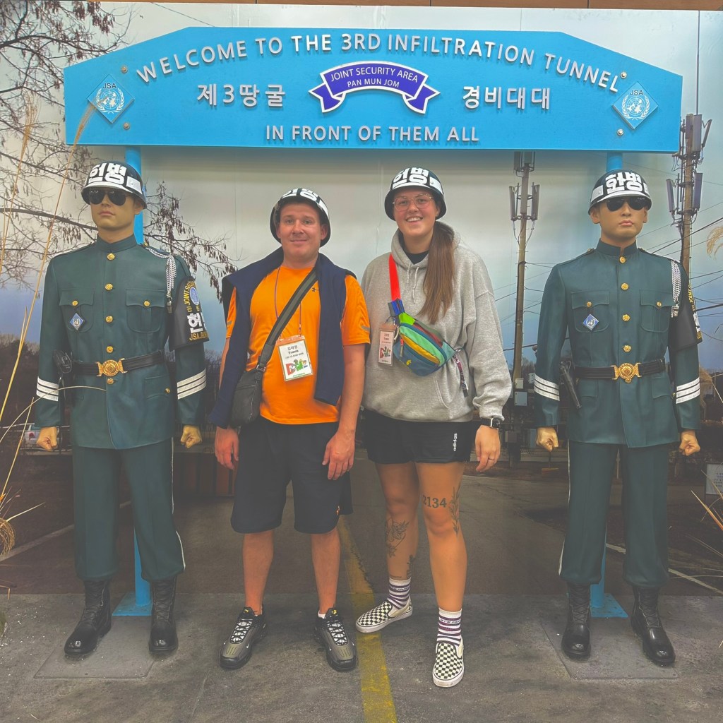 We traveled to the Dora Observatory, no pics allowed here! Our guide was amazing and told us where we could and couldn’t take pictures throughout the day, which was super helpful, especially after seeing signs that the fine for taking photos where you couldn’t was up to ₩30million (around £16k) and up to 3 years imprisonment. This was really cool though, you could see North Korea in the distance from the observatory and there was huge windows that showed as much as could see. On the 3rd floor there was an open deck area with telescopes to be able to see even further but due to some recent events and to keep people safe, this area was closed today so we couldn’t go up there. We learnt so much about the history though, it was really cool to be able to see here.