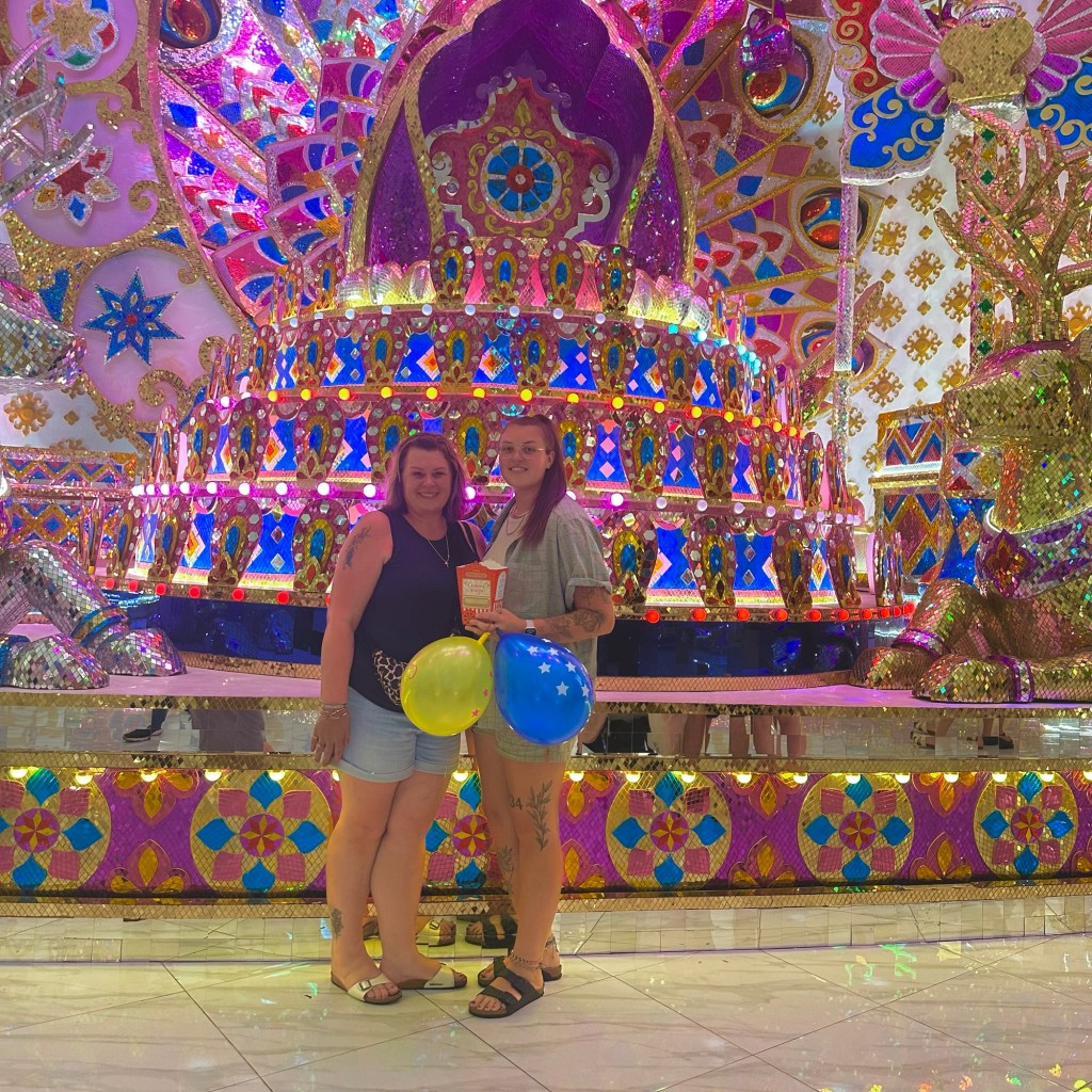 In the evening we went to Carnival Magic Phuket which I genuinely have no words for. It was insane. I’m going to start at the start and genuinely, when I say this experience is as crazy I mean it, it was just jaw dropping from the minute we arrived. All of the staff and characters were smiling and welcoming and as soon as we got our tickets and got inside, we couldn’t believe our eyes. There were lights everywhere, carnival games, the world’s largest popcorn machine (which we obviously got popcorn from), shops, and so much more. I now understood why everyone got there right at the start time.