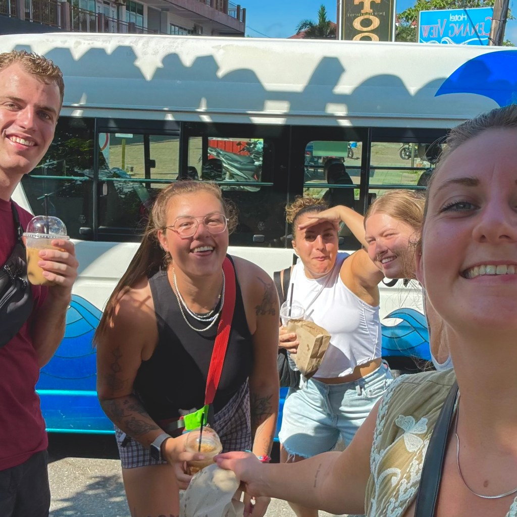 I think it might have been one of the best sunsets I have seen whilst on my travels, it truly was incredible. I think the company makes a good sunset too, we had so much fun playing around in the sand and laughing at life. I just love the simple things in life, and things like watching eh sunset with people you feel closer than ever too after only a few days is definitely one of those simple things. The fire show was also insane and definitely one of the best I’d seen. Lots of cool tricks and Bonnie from our little group even went up as a volunteer to be surrounded by all these fire tricks, she was definitely braver than me! We laughed a lot and enjoyed a few frozen mango cocktails laughing together for the evening.