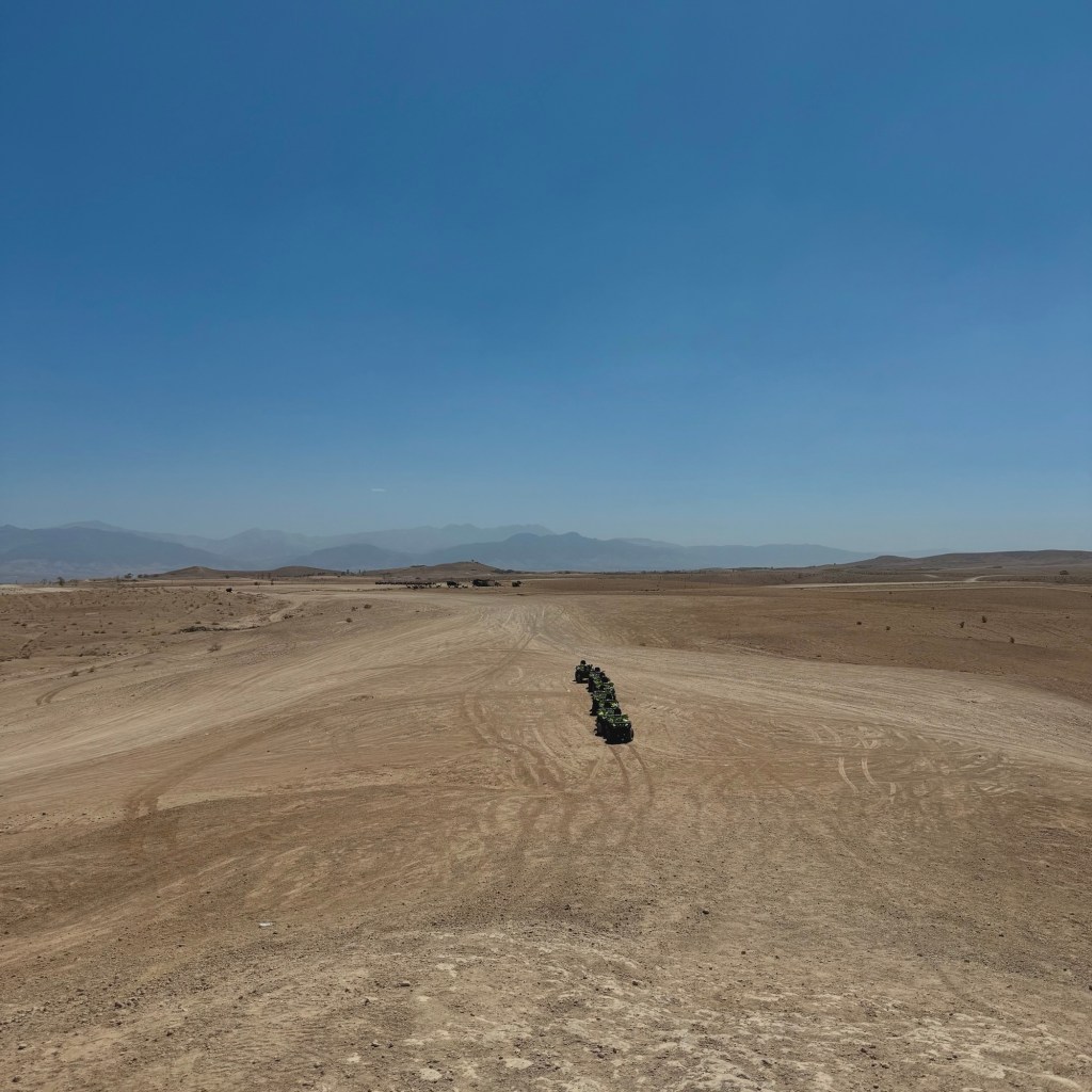 Morocco is an absolute scorcher in July (as discovered) so most trips run from the afternoon into the evening so it is marginally cooler, so I spent the morning chilling by the pool, trying to turn my burn into tan (it didn’t work, I’m more red), before heading to the meeting point. It wasn’t far from my hotel but I took a taxi on advice from the security outside my hotel. Before I knew it we were off for a day of fun in the desert. First up was a quadbiking adventure. This was honestly insane. I’ve been quad biking a number of times on various trips and I never get bored of it. It’s exhilarating and I get such a kick of adrenaline too. We quad biked through the desert for around an hour, stopping to grab some photos halfway around and I thoroughly enjoyed it.