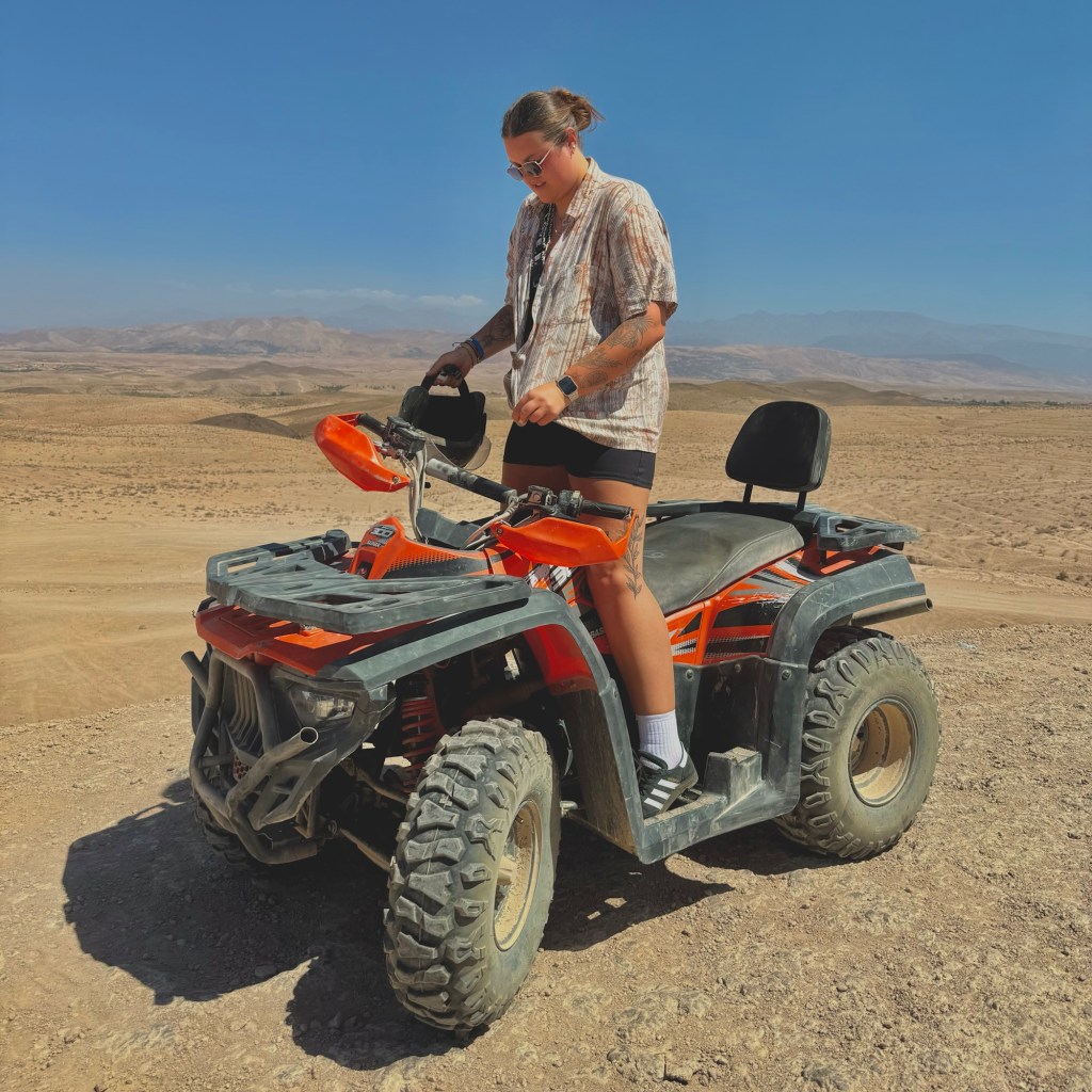 Next day it was time for a bit of an adventure. There’s no way I can go a whole trip without a little bit of culture and adventuring. I use GetYourGuide to book almost every single one of my trips whilst I’m travelling and they never disappoint. I could not recommend them enough. I decided on a quad biking adventure in the desert, with the opportunity to meet some camels whilst watching the sunet, finishing with dinner and traditional Moroccan music and a fire show under the stars. I was very excited. The activity already had some amazing reviews and I was very ready to get going.