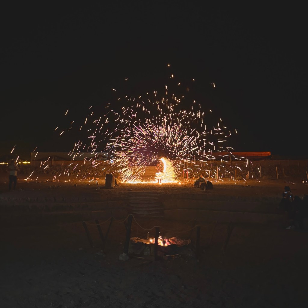 Last stop of the day was dinner under the stars. This did not disappoint. The menu included; vegetable soup, couscous and chicken tagine and it was delightful. Finished off with some cake and more mint tea whilst watching the sunset. There was the opporunity to dance and there was some incredible traditional live music. The day finished with a fire show which really left us on a high. And as for the starry night skies in the desert, wow! I cannot fault any of the day, it truly was incredibly.