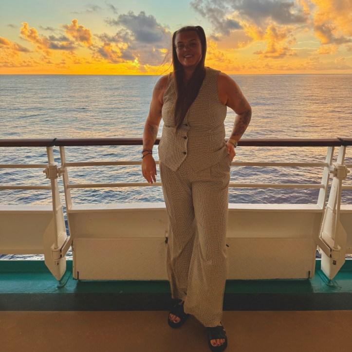 Day three, second day at sea and lots of sunshine today, and I woke up and was in the Caribbean! I spent almost all day out on the pool deck sunbathing. The wind on the ship though meant that I tanned / burnt far quicker than normal, even with suncream I was a lovely shade of red on my shoulders and face. The day was filled with live music, ice cream, sunshine and good vibes which I really loved. I got ready for the evening and headed to tonight’s performance from the onboard dancers and singers, who were genuinely sensational. These talented individuals were not only dancing and singing on stage each night, but also on a moving ship, sometimes rocky etc. Mad skills. From here I headed off to dinner again and my goodness, I cannot even with the food on here. Three course dinner each day is the vibe I can get used to, with some sensational options available. I’ve really settled into a routine now of my evenings and what’s on offer to keep me entertained.