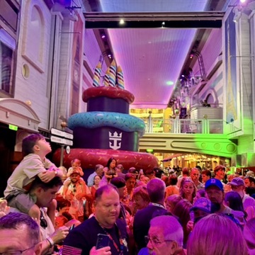 We’re getting to the end of the cruise now, which was making me really sad I’m not going to lie, but I had another sea day ahead of me today, and as always, there was plenty to do onboard. First up after breakfast I headed to the Captain’s Corner, a Q&A with the Ship’s Captain which I really enjoyed. The Captain was super down to earth and answered so many questions which everyone was interested in knowing the answers too. From here I headed to a mindful colouring session, and headed to the pool deck for a little while to top up the tan. Today was also Royal Caribbean’s ‘Birthday Bash’ so there was loads of things throughout the day to celebrate that, including lots of singing and dancing, and a balloon drop on the promenade which was really cool to see.