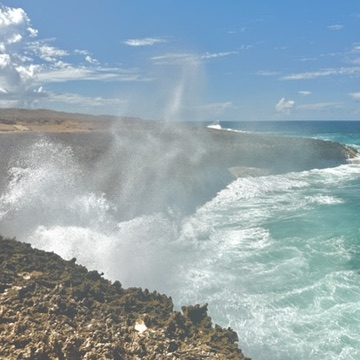 Day four and we’d docked in Willemstad, Curaçao. I was very excited to firstly see land for the first time in two days, but also to explore a new country! All four countries that I’m visiting on this cruise are new to me so I’m definitely going to be doing as much exploring as I can each day that I am visiting. Anyway, back to Curaçao. We docked around midday and I booked an excursion called ‘Beauties of Curaçao’ through Royal Caribbean, it didn’t disappoint. First stop was Shete Boka Park and Boka Tabla, a beautiful national park at the west of the island where the sea slams on the rocks, provided the most stunning shades of blue. The sounds was also so luscious. From here we headed to look at some of the plantation and cacti houses and to the Jan Kock Estate, a former house turned into an art exhibition by a local artist, who really did some amazing work. I definitely wanted to take some home with me.